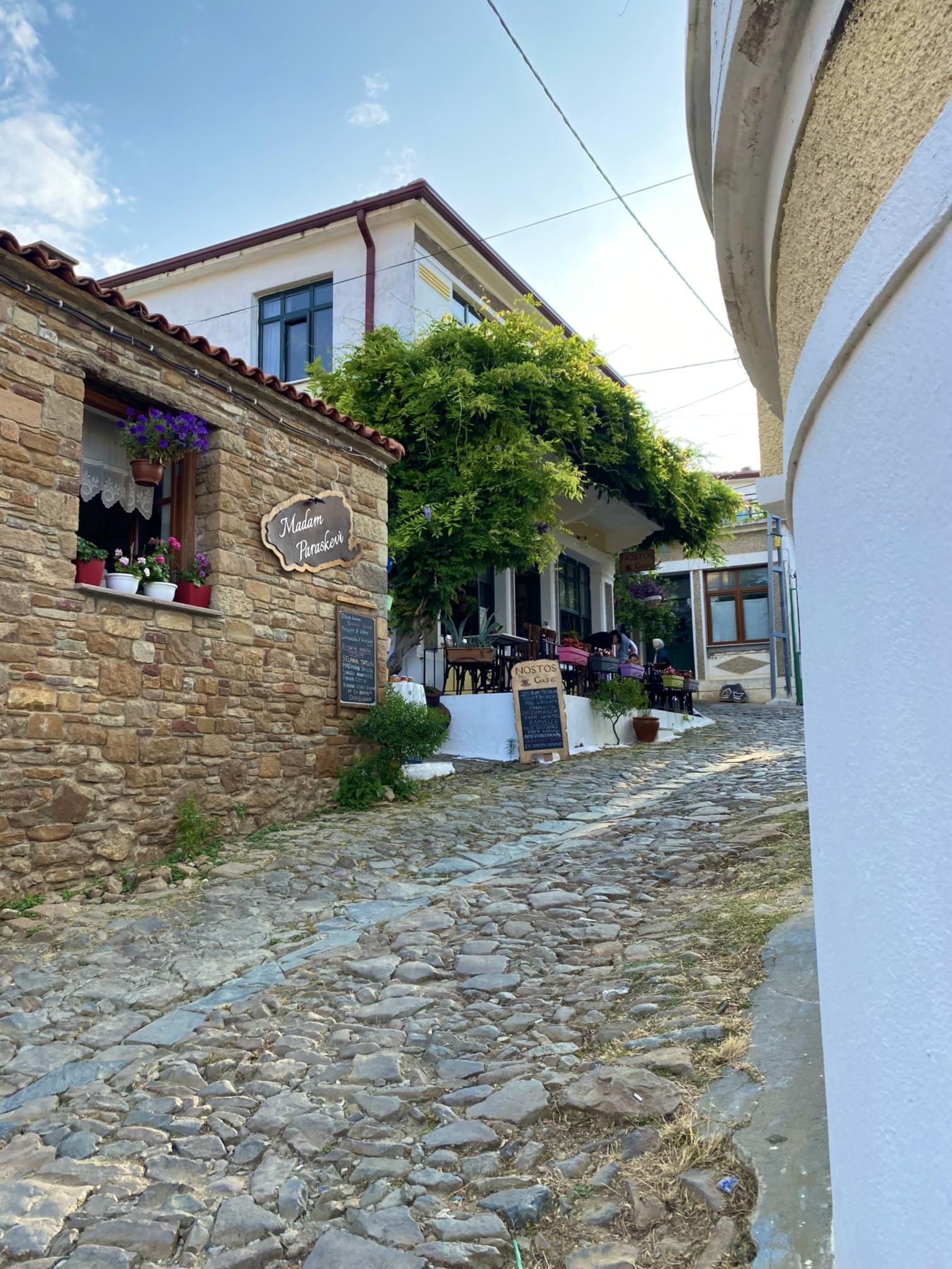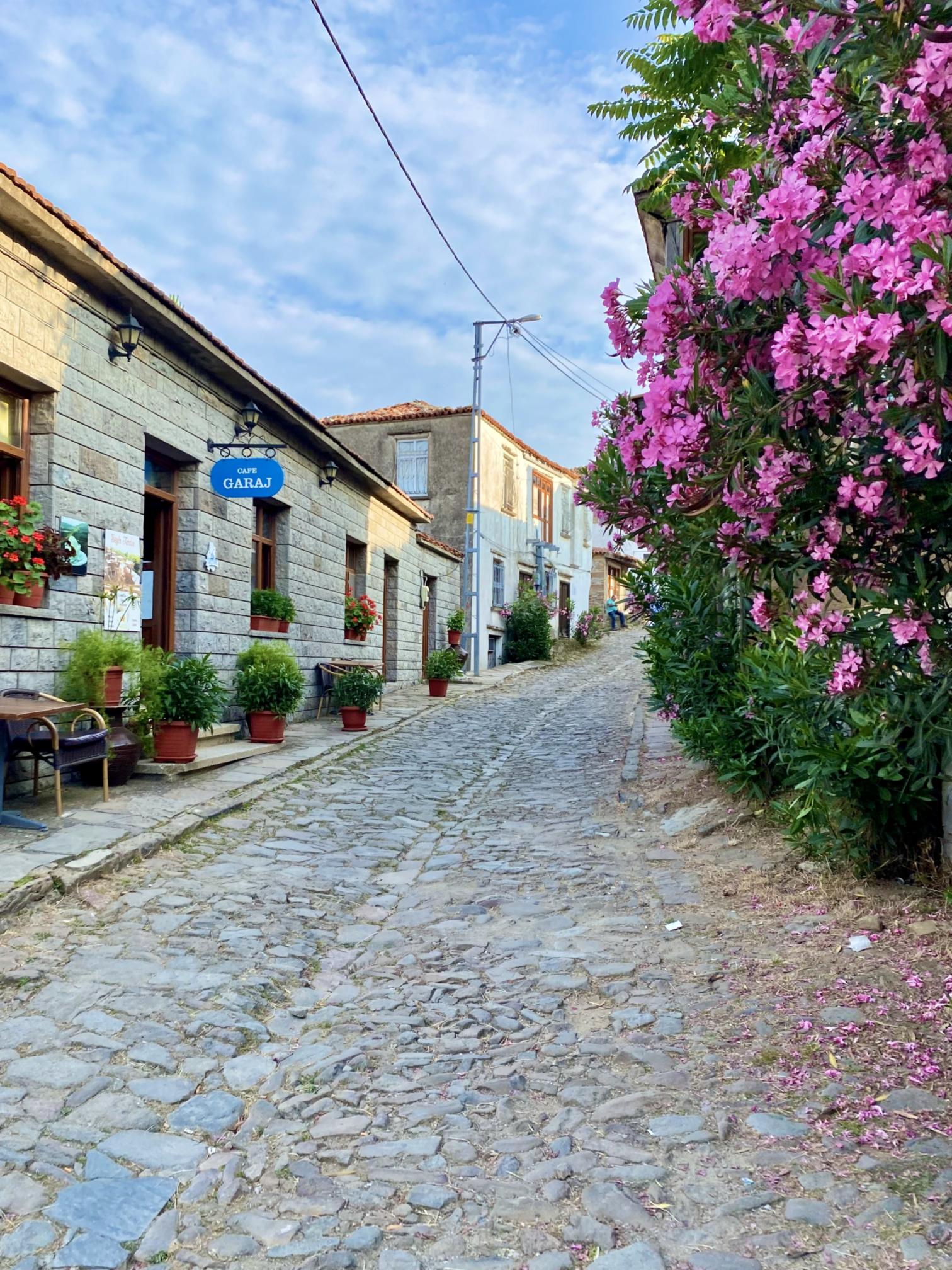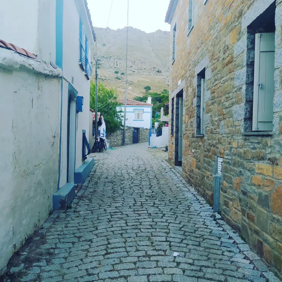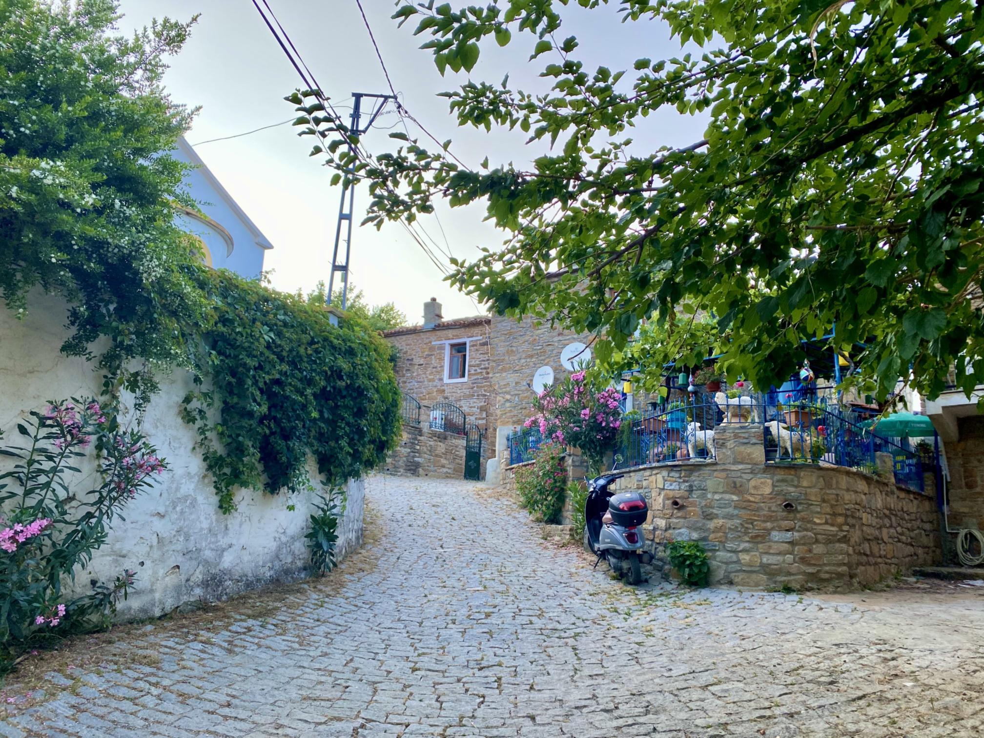 İlçe merkezine 3 km. mesafededir.Bir tepenin yamacında zeytin ağaçları arasında kurulmuş daha çok Rum vatandaşların yaşadığı bir köydür.Madamın dibek kahvesi yıllardır aynı şekilde hizmet veren nostaljik bir mekandır.Köyün girişinde kilise ve okul dikkati çekiyor. Taş sokaklardan yukarı doğru gidince kafeler birbirinden güzel yiyecek ve içeceklerle ziyaretçilerini bekliyor.