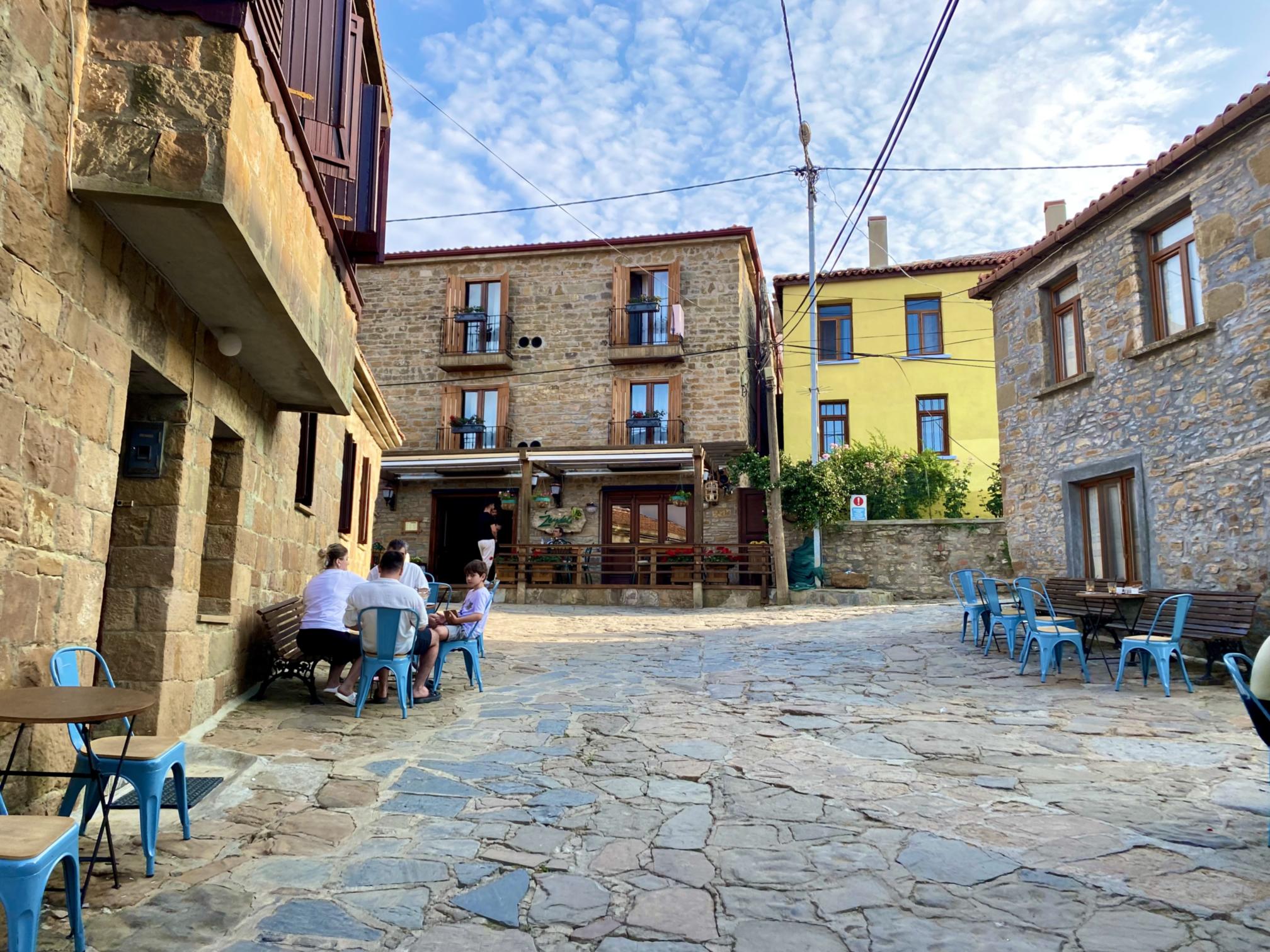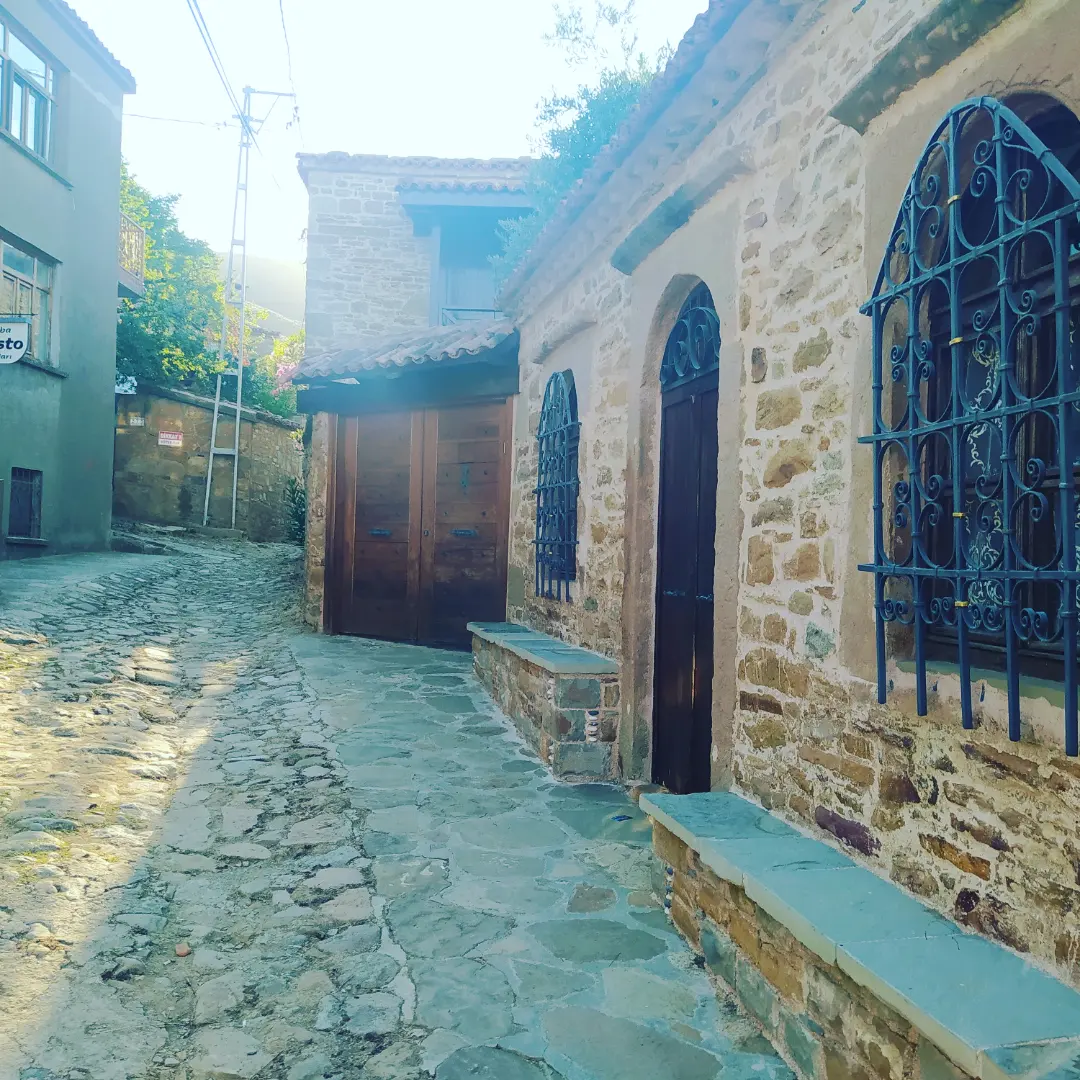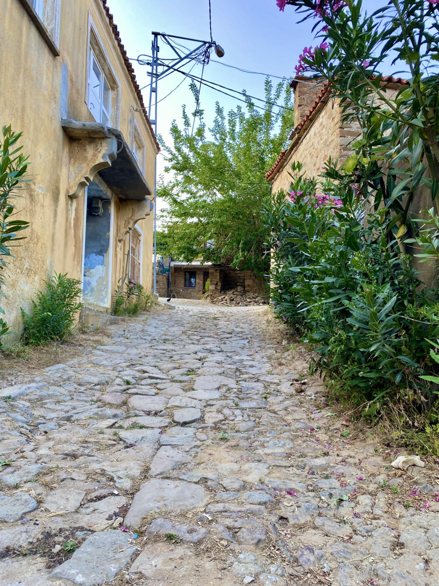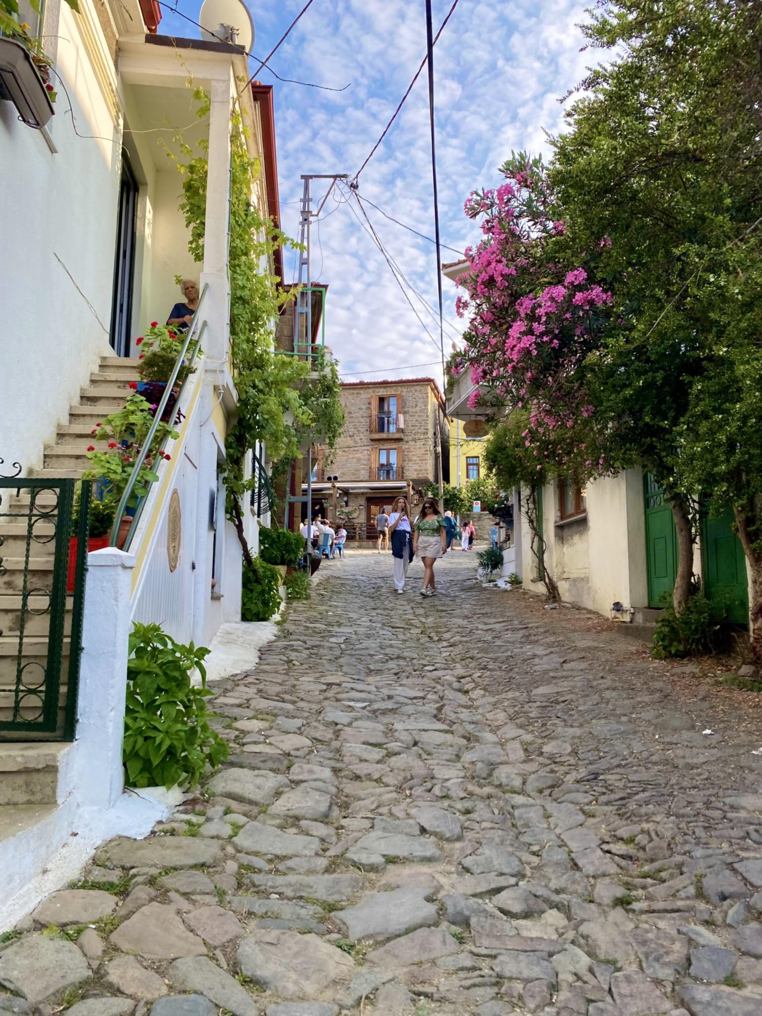 İlçe merkezine 3 km. mesafededir.Bir tepenin yamacında zeytin ağaçları arasında kurulmuş daha çok Rum vatandaşların yaşadığı bir köydür.Madamın dibek kahvesi yıllardır aynı şekilde hizmet veren nostaljik bir mekandır.Köyün girişinde kilise ve okul dikkati çekiyor. Taş sokaklardan yukarı doğru gidince kafeler birbirinden güzel yiyecek ve içeceklerle ziyaretçilerini bekliyor.